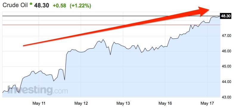 You can see the effect of the Nigerian militant activity on the oil market on Tuesday, reducing supply and boosting the price: