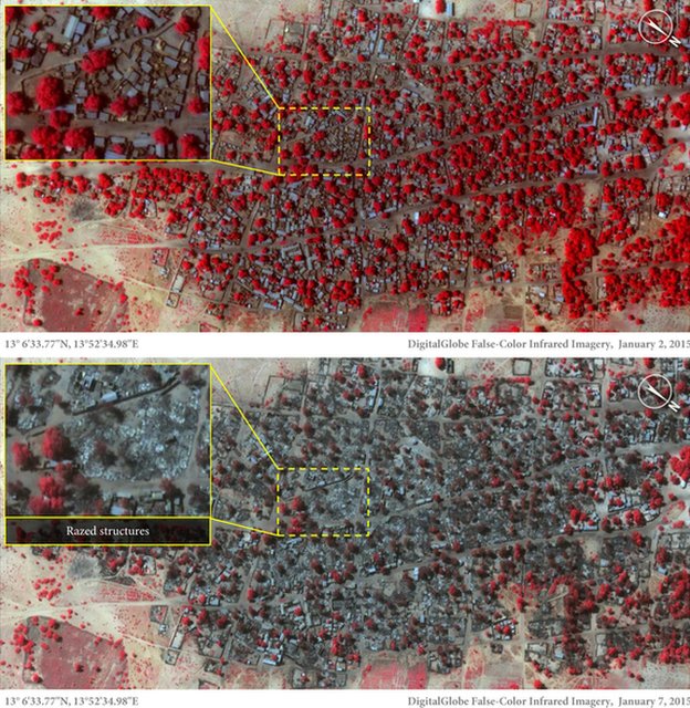 Amnesty International says as many as 2,000 civilians were killed and 3,700 homes and business were destroyed in the Jan. 3 attack. Baga and a key military base remain under Boko Haram’s control.