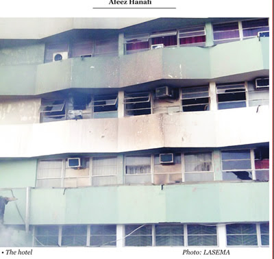 A section of the Lagos Airport Hotel on Obafemi Awolowo Way, Ikeja, was gutted by fire on Monday, destroying no fewer than three halls, two rooms and other valuables worth millions of naira.